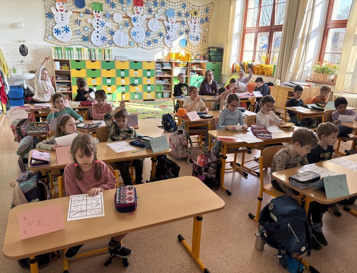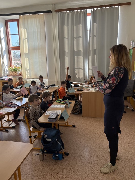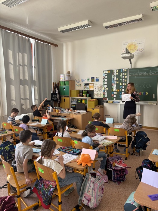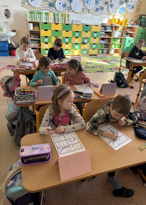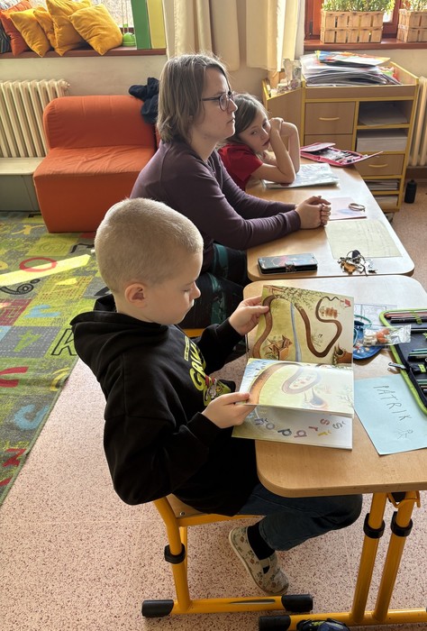 Do třídy nás přišla navštívit paní spisovatelka Lucie Strnadová, která nám přišla představit své knížky o Rozárce. Nám se nejvíce hodila knížka "Rozárka a ztracená písmenka", která nám krásně doplnila výuku čtení genetickou metodou, protože je psána velkými tiskacími písmeny a stejný text i malými tiskacími písmeny. Děti se krásně učí písmena párovat. Pracovali jsme s pracovními listy a část knížky jsme si i přečetli. Některé děti knížku už měly od Ježíška a někdo si ji koupil právě na besedě. Jednu knížku i s písmenky a pracovními listy jsme dostali i jako dárek do třídy.