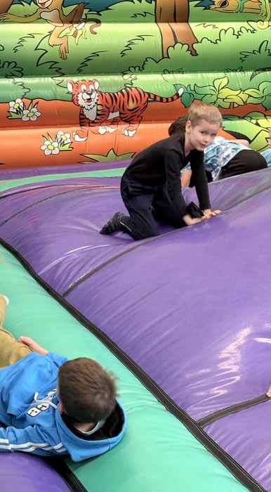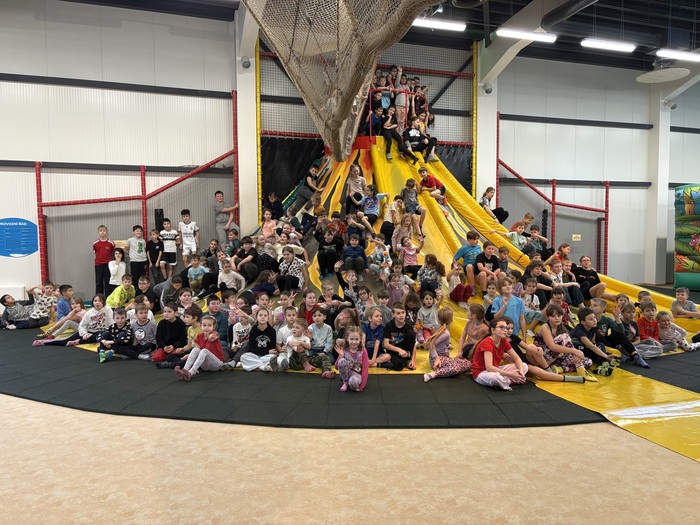 Jako odměnu za práci v téměř celém prvním pololetí letošního školního roku a za náročné zkoušení na oslavy 100 let a besídku v divadle, dostaly všechny děti z prvního stupně veliký dárek a společně se šly vyřádit do Robinsona.