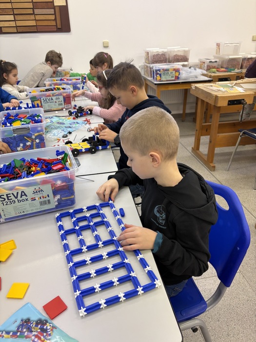 Poslední školní dopoledne před jarními prázdninami jsme si zpříjemnili návštěvou centra Technické výuky na ZŠ Jungmannova. Pan učitel Koreň měl pro nás připraveny nové stavebnice, vše nám pěkně vysvětlil a pak už jsme se mohli pustit do stavění. Obě stavebnice nás moc bavily a užili jsme si tu moc příjemné dopoledne. Cestou zpět do školy jsme si prohlédli první jarní kytičky, které už jsou k vidění na zahrádkách.