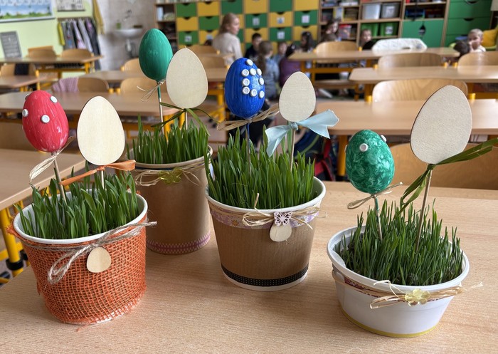V 1.A jsme se chystali na velikonoce. Začalo to akcí školního parlamentu, kdy jsme na družinové zahrádce sbírali velikonoční vajíčka. Naším úkolem bylo, jich v daném limitu nasbírat co nejvíce. Ve výtvarce jsme dělali velikonoční výzdobu, zaseli jsme osení do misek, které jsme pěkně nazdobili a namalovali jsme i vajíčko jako zápich. V tělocviku jsme zkoušeli zaječí skok a nejdále skočila Anička a Ayansh. Také jsme se vydali na putování za velikonočním zajíčkem, putování začalo kvůli špatnému počasí ve třídě, kde jsme plnili různé velikonoční úkoly a vyluštili velikonoční heslo. Potom jsme se vypravili na zahrádku, hledat zajíčkovy stopy, které nás přivedly zpět do třídy, kde na nás čekal zajíček s velikonoční nadílkou.