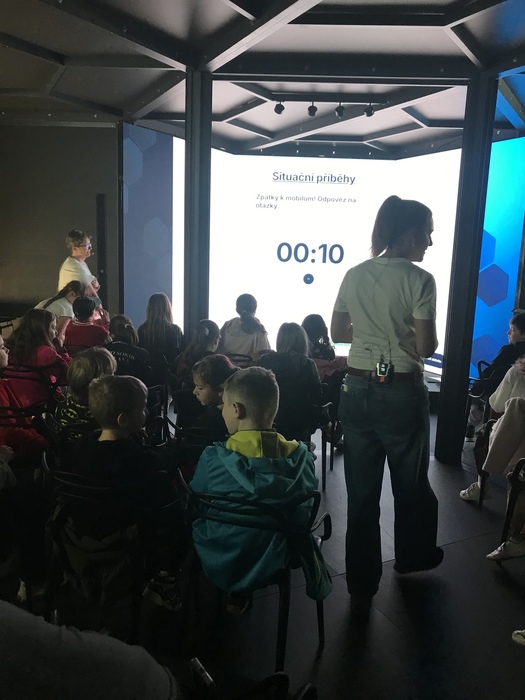 Na náměstí jsme navštívili roadshow nadace České spořitelny. Nejdříve jsme si na přednášce řekli klady a zápory bezhotovostní platby a vysvětlili si jak co funguje. Poté jsme šli na výstavní část, kde pro nás byla připravena témata spojena s novými technologiemi a také umělou technologií. Nakonec si děli mohli udělat fotku, kde je umělá inteligence upravila.