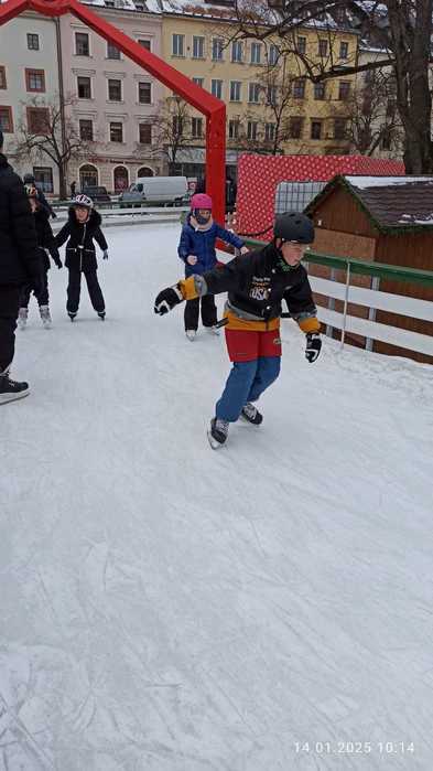 Než se po hodinách plavání a nového cirkusu zase vydáme na tradiční hodiny tělesné výchovy do tělocvičny, využili jsme ještě kluziště na jihlavském náměstí a s bruslemi a helmami jsme vyzkoušeli kvalitu ledu.