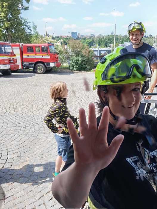 Na konci každého školního roku se věnujeme preventivně výchovné činnosti - projektu Ochrana člověka za mimořádných událostí. Tento projekt zahrnuje vždy několik hodin teorie, letos jsme si k nim přidali ještě návštěvu HZS Kraje Vysočina. Téměř 2 hodiny nás po stanici ochotně provázel profesionální hasič Kuba, které nám řekl a ukázal spoustu zajímavých věcí, ovšem jako největší zážitek si nejen děti, ale i paní učitelka s paní asistentkou odnesly vyhlídku z profi výsuvného požárního žebříku z výšky 41 metrů. Jak řekly děti: ,,Tak to bylo mega hustý."