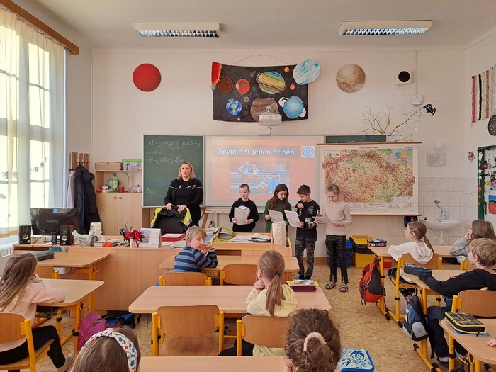 A protože prevence není nikdy dost, ve stejný den nás navštívila paní policistka. Společně jsme se zamýšleli nad tím, zda si ve třídě pomáháme a jestli si někdy záměrně neubližujeme. Četli jsme si příběh, jehož tématem byla šikana.