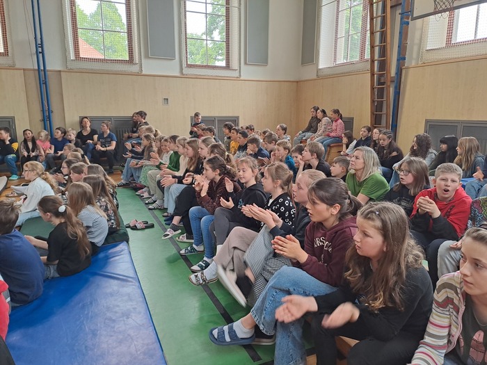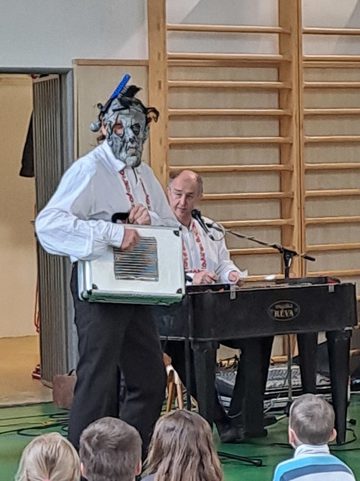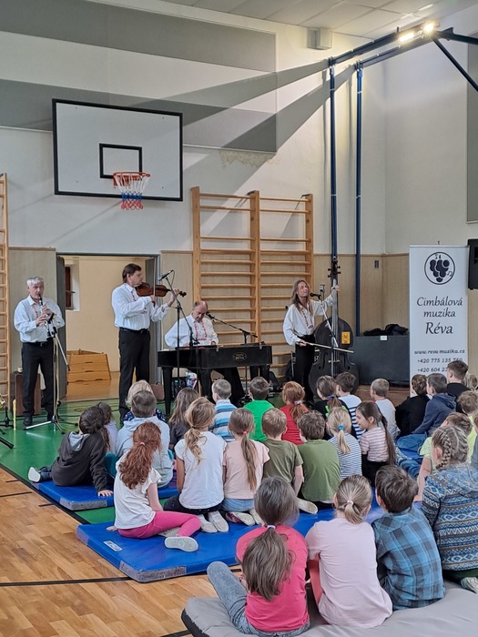 Příjemnou hodinu jsme strávili v pondělí 26. května v tělocvičně naší školy. Ze Zlína za námi přijela cimbálová muzika Réva. Slyšeli jsme několik lidových i moderních českých písní nebo známé písně od Imagine Dragons či Beatles v podání cimbálu, houslí, klarinetu a kontrabasu. Děti měly možnost si zazpívat i zatančit. Zpátky do třídy se nám moc nechtělo...