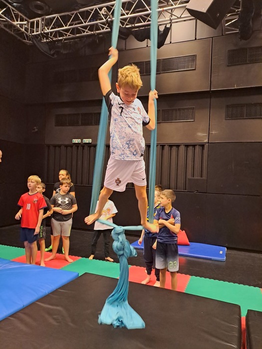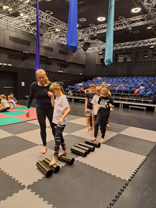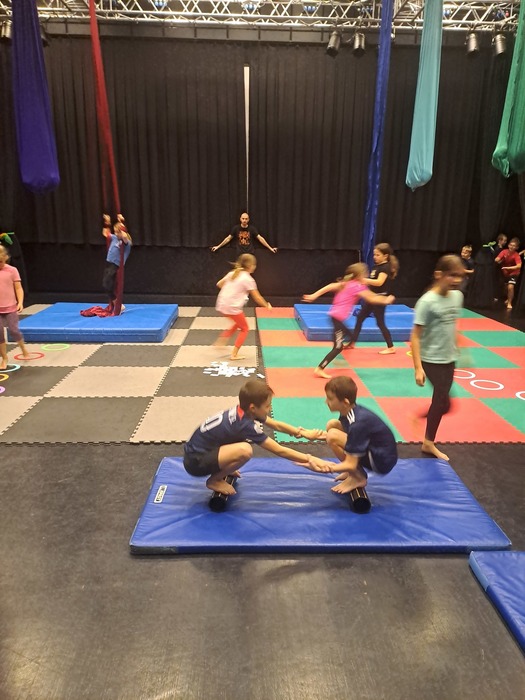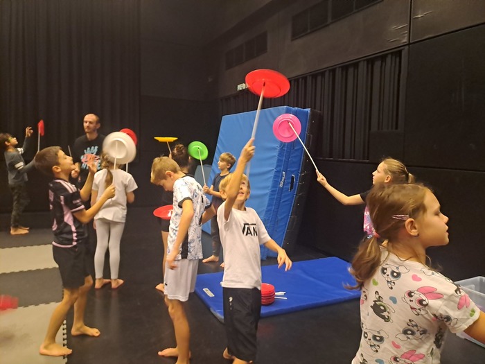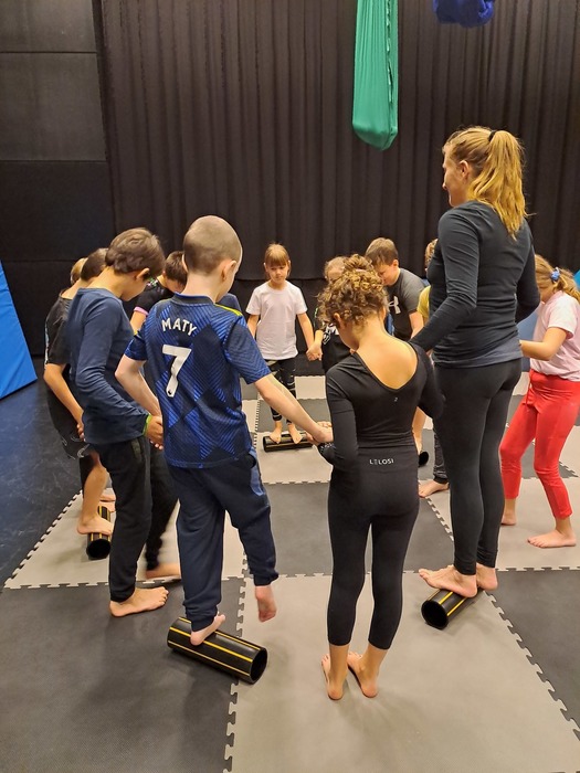 Hodiny tělesné výchovy máme letos opravdu pestré. Jen co jsme zakončili plavecký výcvik, plynule jsme se přesunuli do DIODu, abychom pod vedením trenérů oddílu Akrobat Sokola Jihlava pronikli do technik cirkusového umění.
