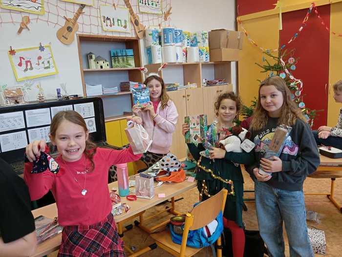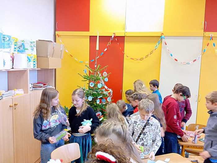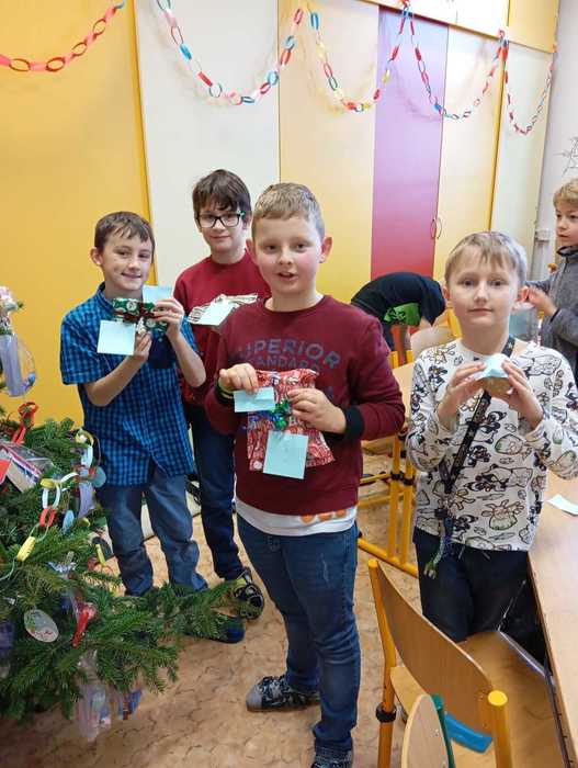 Před Vánocemi jsme měli ve IV. B opravdu napilno. Kromě toho, že jsme trénovali vystoupení na vánoční besídku, vyráběli jsme si vlastní ozdobičky na vánoční stromeček, který nám dovezla paní Suchá a my jí za to jí moc děkujeme. Také jsme se snažili vyzdobit třídu. Za skvělý výkon na vánoční besídce jsme si společně se všemi žáky 1. stupně naší školy užili dopoledne v Robinsonu. Vybraní žáci z naší třídy se zúčastnili pečení perníčků - to byla akce školního žákovského parlamentu. Pro rodiče si děti vyrobily dárečky z lékařských špachtlí ... no a poslední školní den v roce 2024 ... v pátek 20. 12. jsme si společně užili třídní besídku. Hned ráno jsme vyrazili do lesa podarovat zvířátka a potom už nás čekala ochutnávka cukroví, losování a rozbalování dárečků. Aura si pro nás připravila vlastní vánoční animaci o skřítkovi a také dárečky pro všechny ze třídy. Zinka se stylově oblékla a celou třídu také podarovala vánočními vykrajovátky. No a pak už jsme vyrazili domů na vánoční prázdniny!