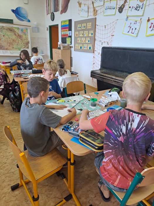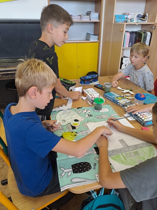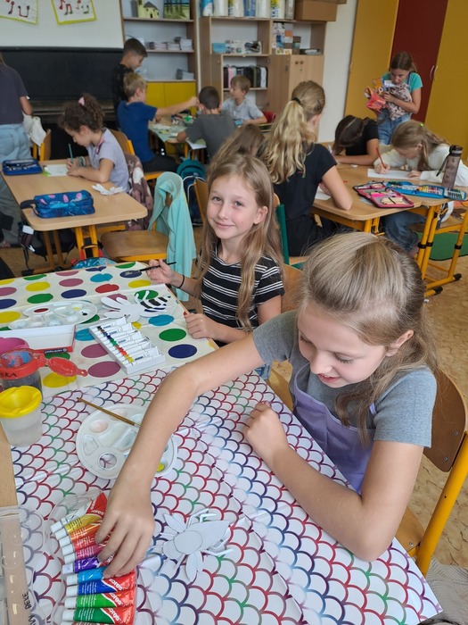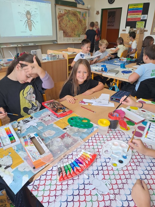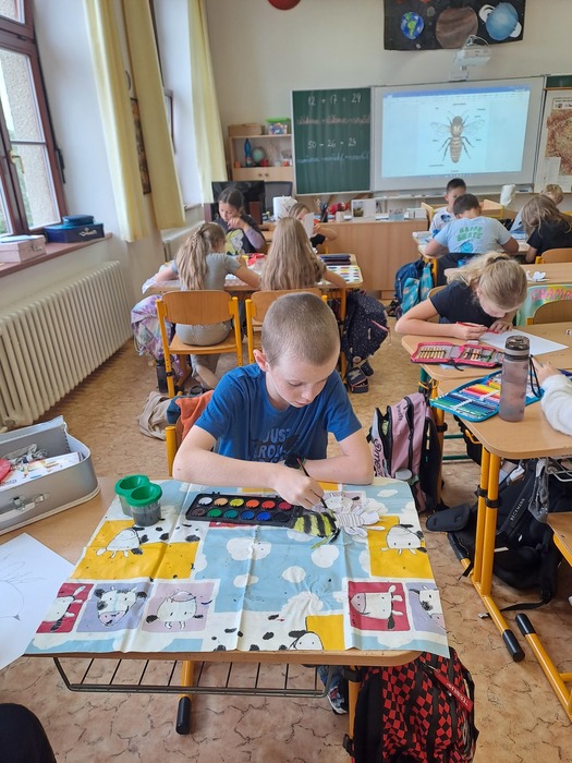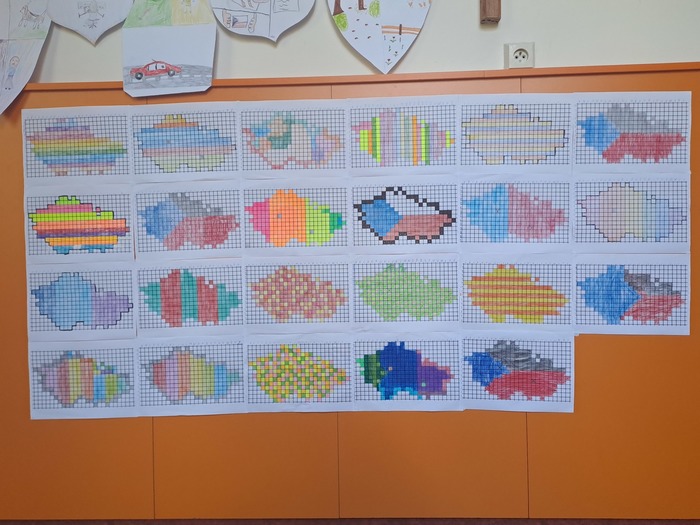V hodinách výtvarné výchovy často navazujeme na témata z jiných vyučovacích předmětů. Postavu svatého Václava jsme si připomínali v průběhu celého týdne a toto téma jsme zakončili výrobou svatováclavské koruny. Českou republikou vykreslenou ve čtvercové síti jsme zároveň v předmětu výtvarná výchova naplnili digitální kompetence. No a včelky na plástvi jsme si vyrobili jen tak.