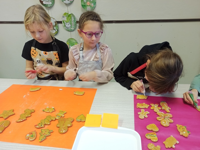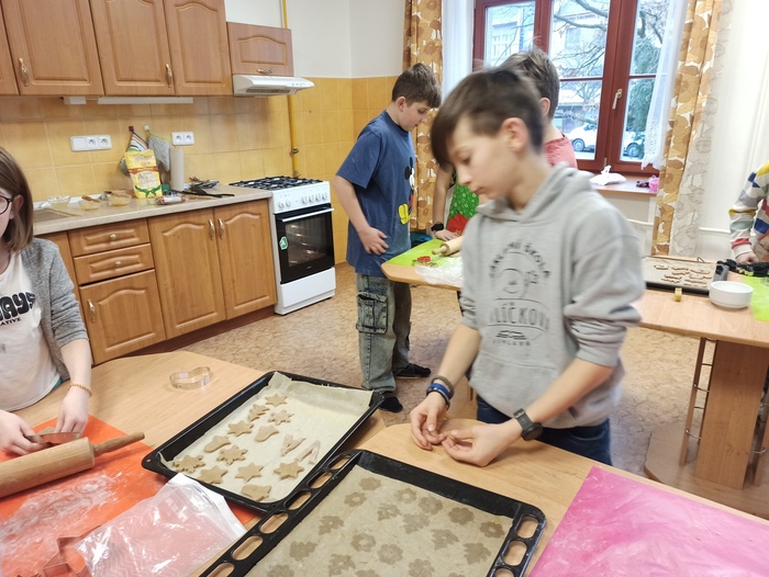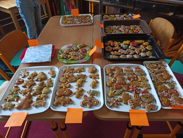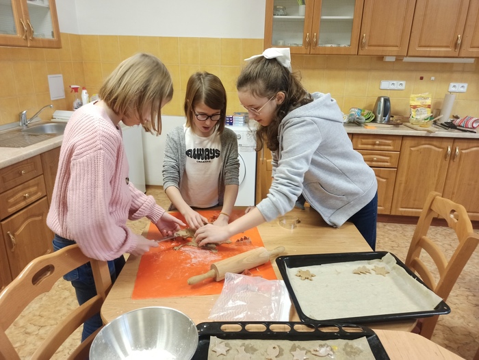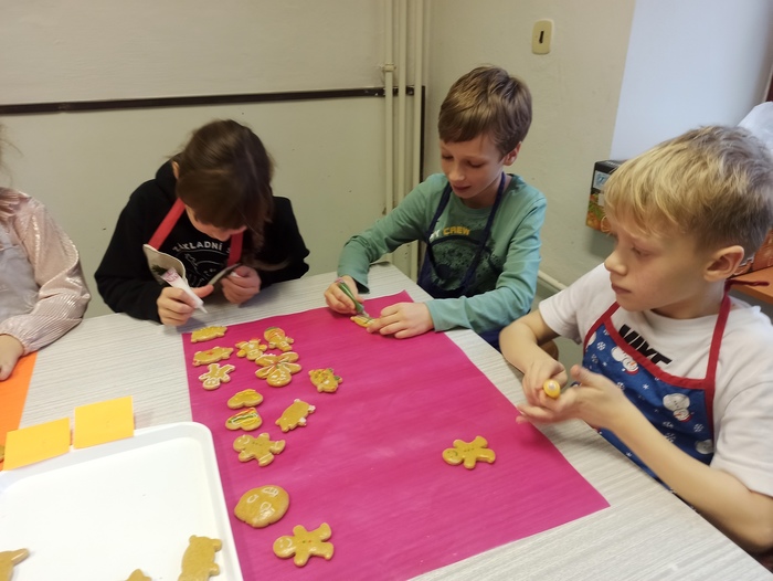Žáci 3. až 6. tříd si vybrali své zástupce, kteří z připraveného těsta napekli vánoční perníčky. Jiná skupinka pak perníčky nazdobila. Druhý den si všichni žáci daných tříd pochutnali na napečených dobrotách. Vánoční pečení se všem moc líbilo.
