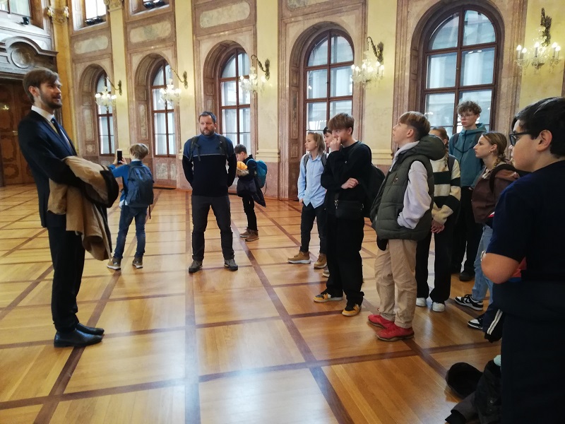 Ve čtvrtek 13. 12. jsme se školním parlamentem navštívili Prahu. Jako první jsme byli v Senátu ČR, kde nás uvítal a chvilku si s námi povídal předseda Senátu pan Miloš Vystrčil. Při prohlídce Valdštejnského paláce jsme měli možnost navštívit jednací místnost Senátu. Tady jsme viděli pana prezidenta Petra Pavla, který byl na návštěvě Senátu a představil zde kandidáty na ústavní soudce.