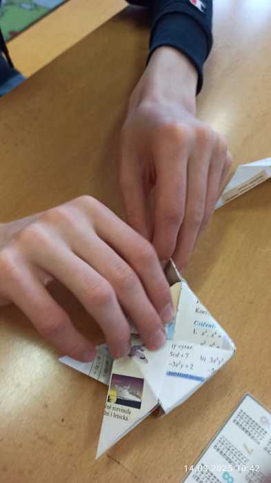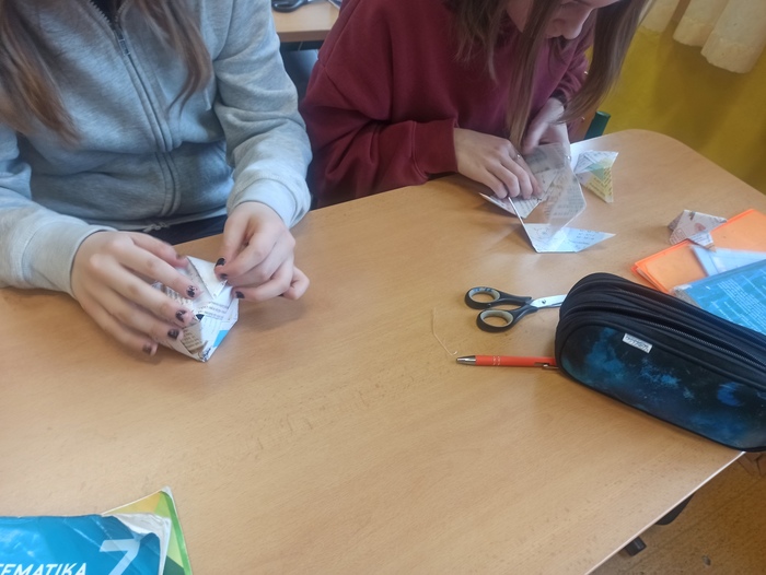 Na skládání jsme použili staré učebnice, které bychom jinak vyhodili do starého papíru. Takto nám vyřazené učebnice posloužili ke kreativnímu tvoření.