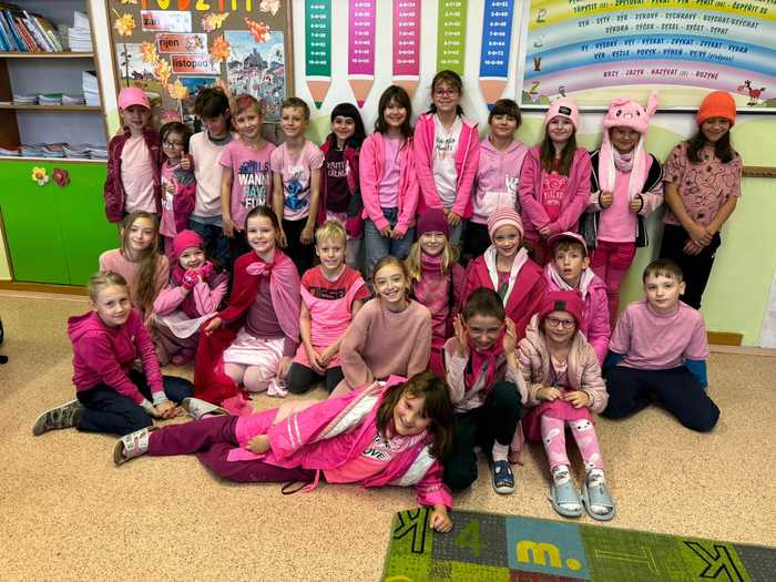 V tento den se většina našich žáků oblékla do růžové barvy, abychom podpořili včasnou prevence nádorových onemocnění. Některé třídy si připravili další aktivity s touto tématikou.