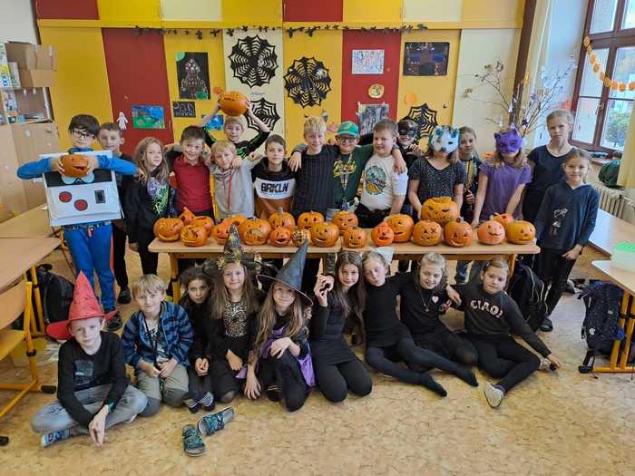 ....vystačili si s tím,co se naučili ve škole během 2 měsíců. Provázela je pohádka, písničky a na závěr diskotéka. Do V.A se dnes přišli učit místo děti samí duchové. Ti se snažili vyřešit Halloweenskou záhadu. atd. Více najdete na facebooku naší školy