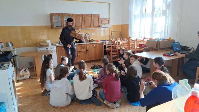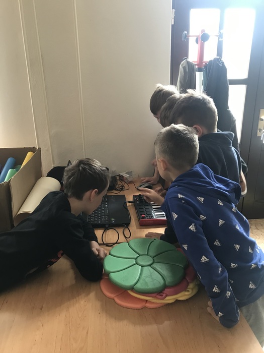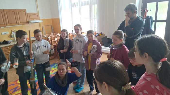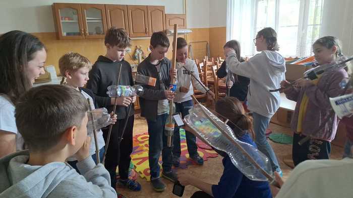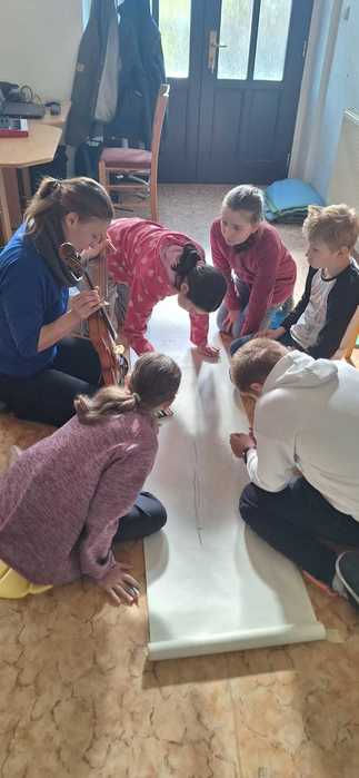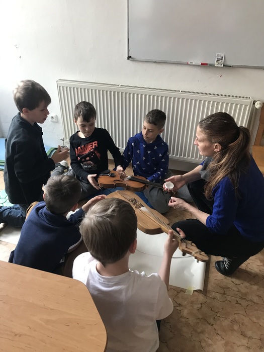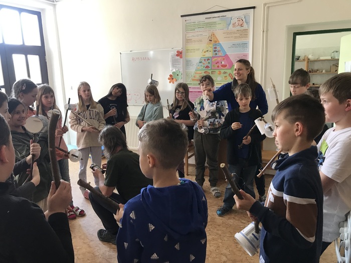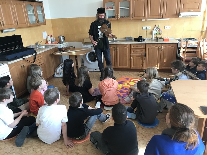 Ve čtvrtek 25.4. u nás ve škole proběhl hudební workshop pro 4. třídy. Přišli za námi lektoři z domu Gustava Mahlera a strávili jsme společně příjemné 2 hodiny. Nejdříve jsme si povídali o Gustavu Mahlerovi, Matěj Kolář nám zahrál na skřipky i na housle a rozcvičili jsme se rytmickou hrou. Hudební nástroje jsme kreslili, vyráběli a skládali jsme i vlastní písničku. Na vlastnoručně vyrobené nástroje jsme si na závěr společně zahráli.