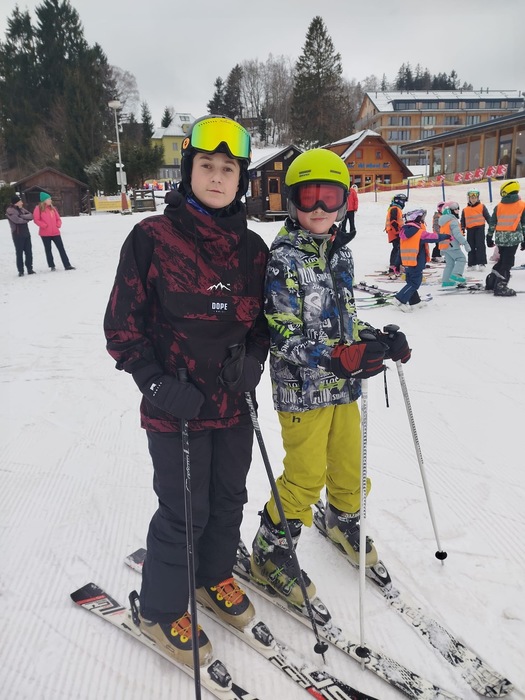 Svých lyžařských zážitků a zkušeností se již dočkali i žáci 7. tříd. V sobotu 7. února odjeli sedmáci, doplněni o pětici osmáků, v doprovodu tří učitelů naší školy směr Janské Lázně, kde na ně čekal pohodový pobyt plný lyžování. Letos s námi oproti loňskému roku odjely i potřebné skipasy, což se ale nedalo říct o lyžařské bundě pana učitele Kočího... Než se stihly děti rozkoukat v autobuse, už se vystupovalo na zastávce v Janských Lázních, kde už čekala druhá polovina výpravy, a to děti se svými učiteli z Větrného Jeníkova, kteří nám byli po celý týden skvělými parťáky.