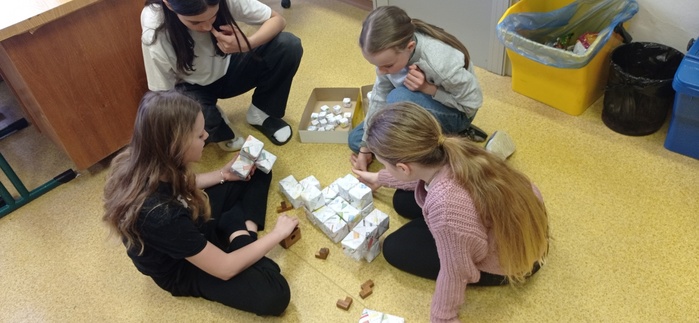 Na druhém stupni se žáci pustili do skládání Sonobovy kostky, která je složena z šesti čtverců a může být vytvořena bez lepení. Po sestavení kostek spojili jednotlivé části do větších dílů hlavolamu, z nichž nakonec sestavili velkou krychli.