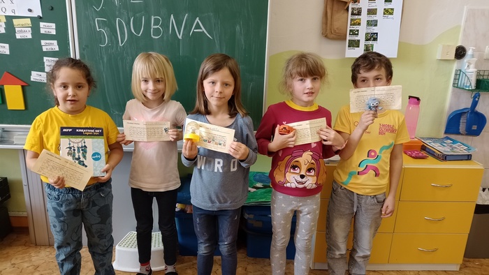 Březen je měsíc knihy a prvňáci dostali speciální čtenářské jízdenky, kam si zapisovali čas, kolik minut denně četli nahlas. Navštívili také knihovnu na Bedřichově, kde si někteří začali pravidelně půjčovat knížky. Na konci měsíce proběhlo sčítání minut, se kterým nám pomohli osmáci během hodiny matematiky. Dnes proběhlo vyhlášení a rozdání odměn. Na první místě se umístila Adélka Hovoříková, která celkem za měsíc četla neuvěřitelných 15 h a 33 minut. Na fotce je spolu s dětmi, které četly více jak 10 h. O přečtených knížkách pak vyprávějí ve škole.