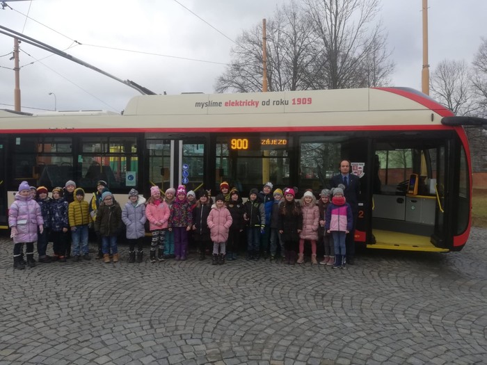 Naši prvňáčci si v předvánočním a povánočním čase užili VIP zážitkovou jízdu trolejbusem po Jihlavě. Okružní trasa začala před budovou naší základní školy, kde na nás čekal přistavený trolejbus a ve stylové uniformě nás přivítal sám pan řidič. Během jízdy jsme několikrát zastavili, aby nám řidič trolejbusu ukázal a vysvětlil různé zajímavosti, bez nichž se nelze v provozu MHD obejít. Měli jsme možnost vidět zblízka nasazování „klacků“ na dráty, přechod trolejbusu na bateriový provoz a zpět na el. proud, přepínání výhybek a semaforů, měnění uhlíků na konci „klacků“, trafostanici, kde se přeměňuje el. proud pro trolejbusy a dozvěděli jsme se i něco málo z historie MHD v Jihlavě. V závěru jsme trolejbusem vjeli i do areálu Dopravního podniku, kde jsme měli možnost vidět odstavené trolejbusy, garáže, depo a především myčku trolejbusů, z které vyjel náš VIP trolejbus zcela nablýskaný. Pro děti bylo soukromé cestování trolejbusem skutečným dobrodružstvím.