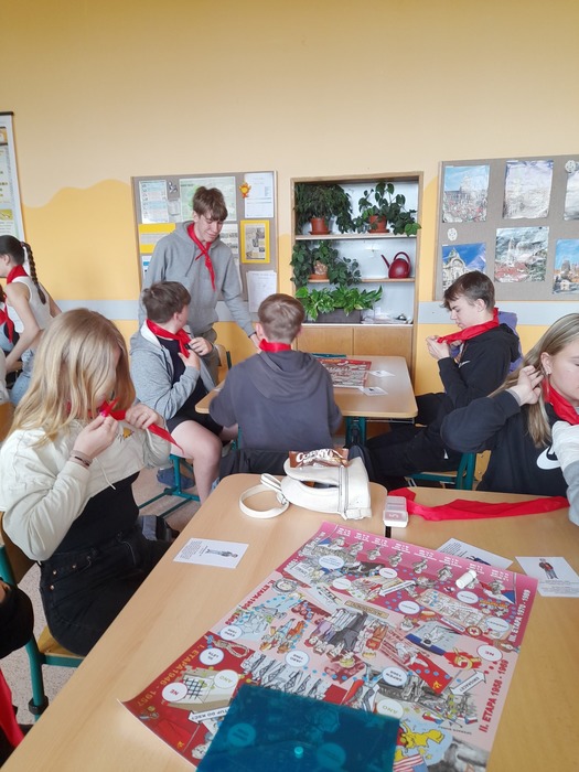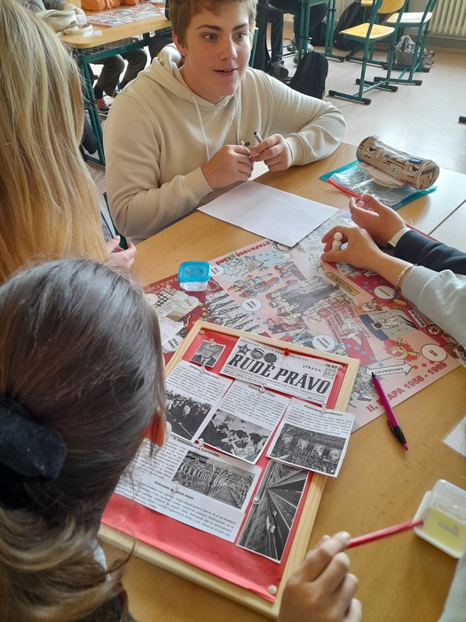 V pátek 19. května se žáci 9. ročníku zúčastnili vzdělávacího programu Ze života české společnosti, který pro ně připravila vzdělávací agentura Besedárium. Formou interaktivní hry se seznámili se základními mezníky 20. století v naší zemi.