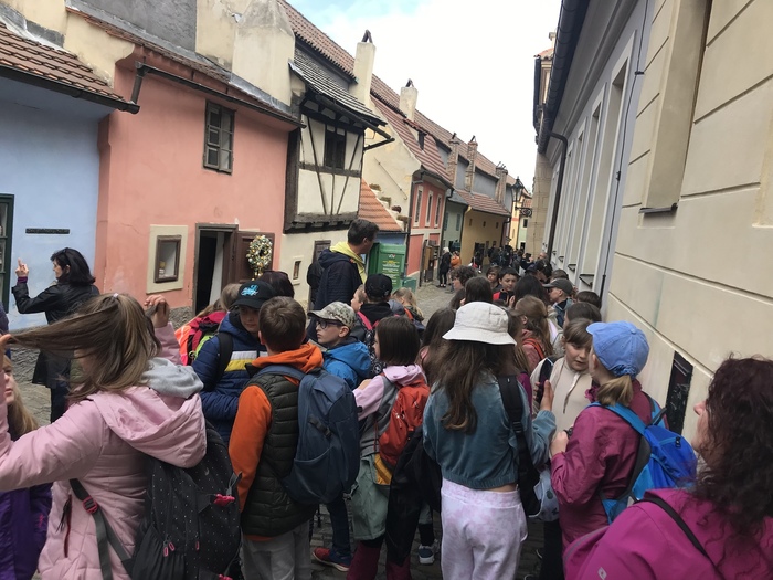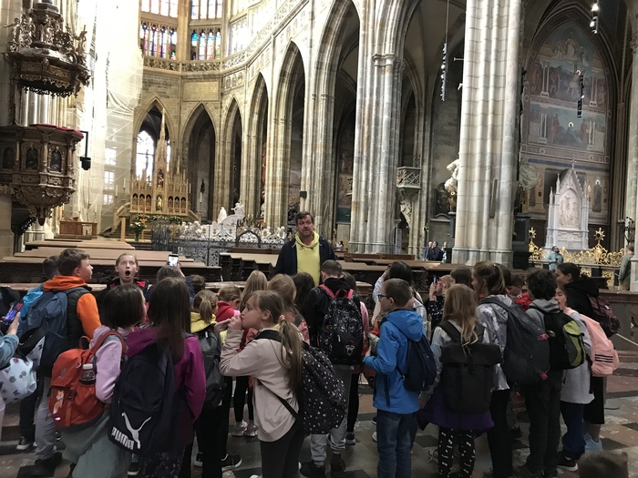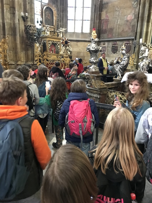 Ve čtvrtek jsme se vydali do Prahy. Navštívili jsme Vyšehrad, Slavín, Pražský hrad, katedrálu sv. Víta, Zlatou uličku, Karlův most, Staroměstské náměstí a Prašnou bránu. Viděli jsme střídání stráží, korunovační klenoty a spoustu dalšího. S výkladem pana průvodce jsme se dozvěděli i spoustu nových informací o naší historii.