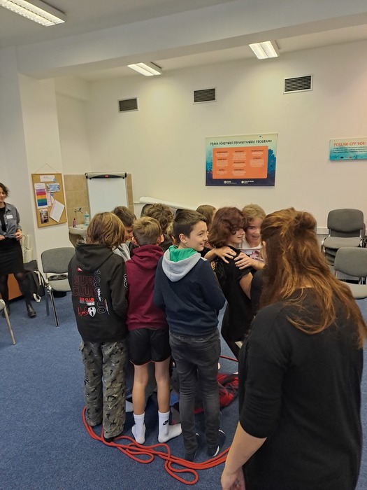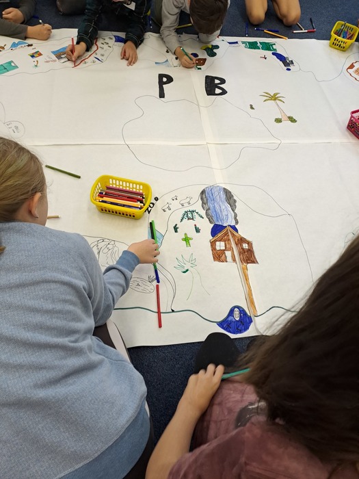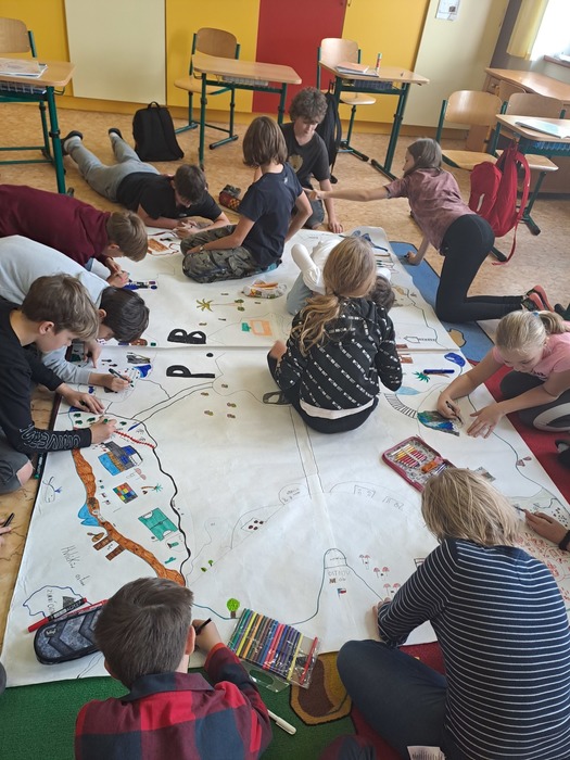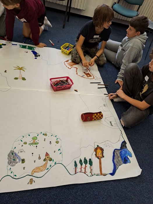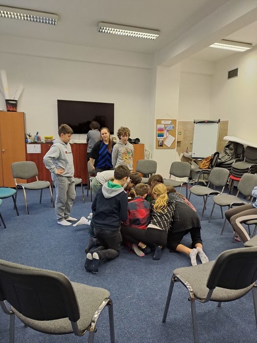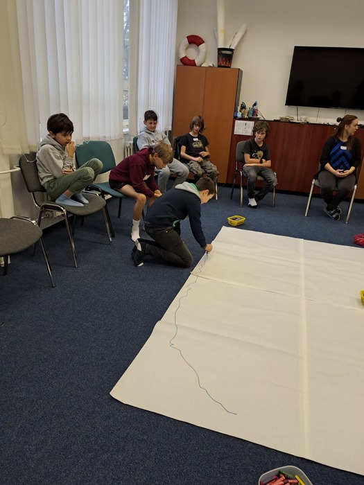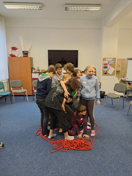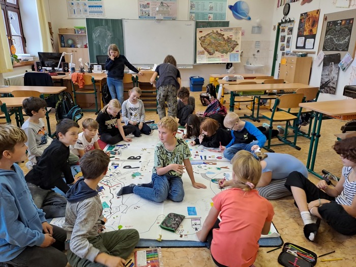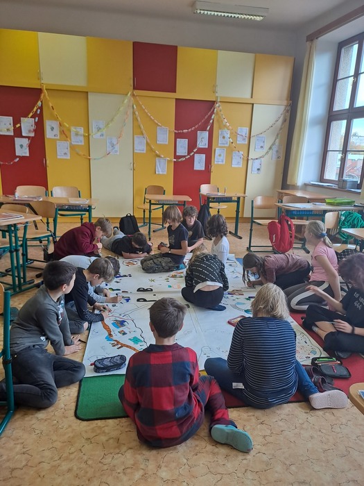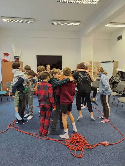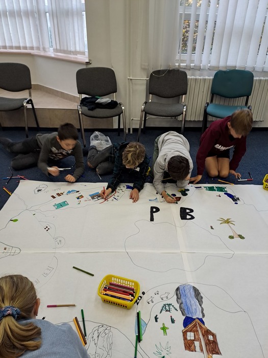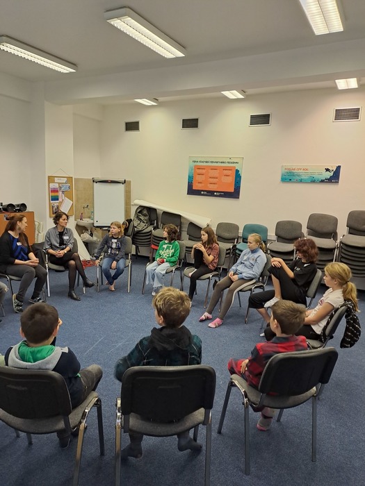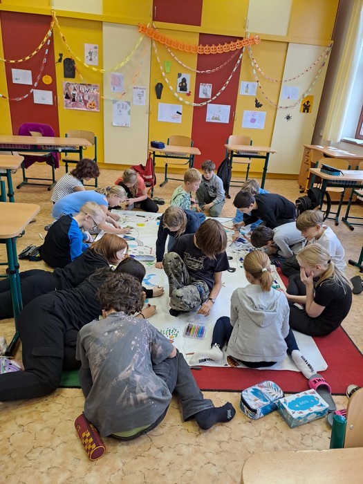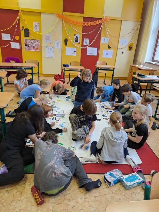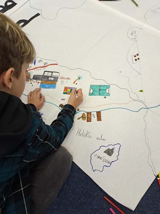 Ve středu před podzimními prázdninami jsme společně navštívili jihlavské centrum primární prevence DOK. Program na téma Vztahy v kolektivu byl zaměřen na uvědomění si podstaty přátelství, kamarádství, komunikace a jejich důležitosti pro lidský život. Cílem je vést děti k zájmu o sebe navzájem, pozitivním vztahům k druhým, zodpovědnosti a laskavosti. Smyslem programu je podpořit zdravé vytváření vztahů v kolektivu. Děti si během programu povídaly, zahrály si hry a na velký formát balicího papíru si začaly tvořit svůj vlastní ostrov. Tvorba ostrova je natolik zaujala, že pokračovaly následně i ve třídě a po jeho dokončení si plánujeme tento obraz ostrova pověsit ve třídě na zeď. Po cestě zpět do školy jsme si i trochu stačili zablbnout na čerstvém vzduchu.