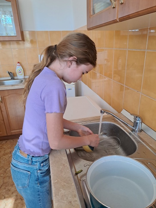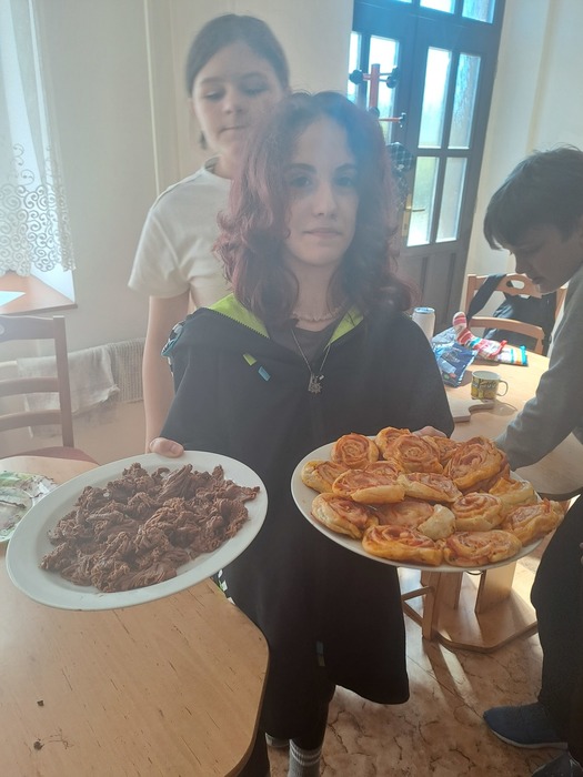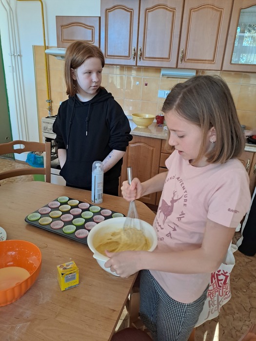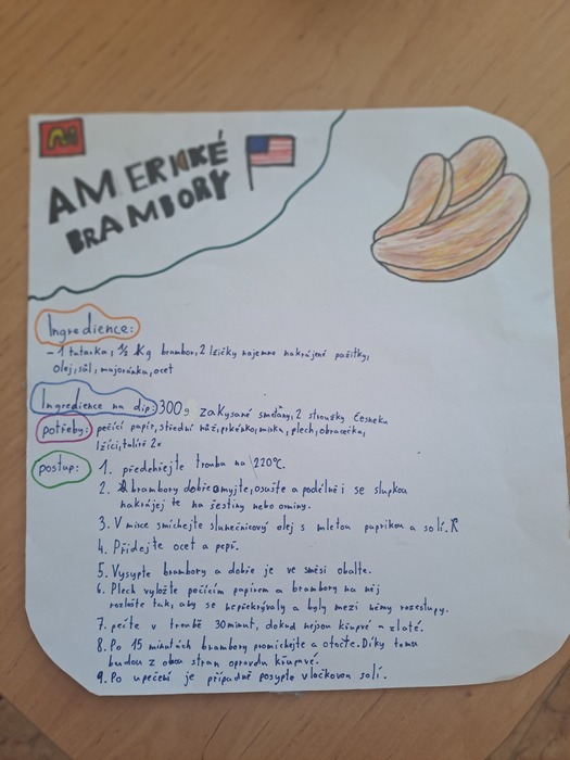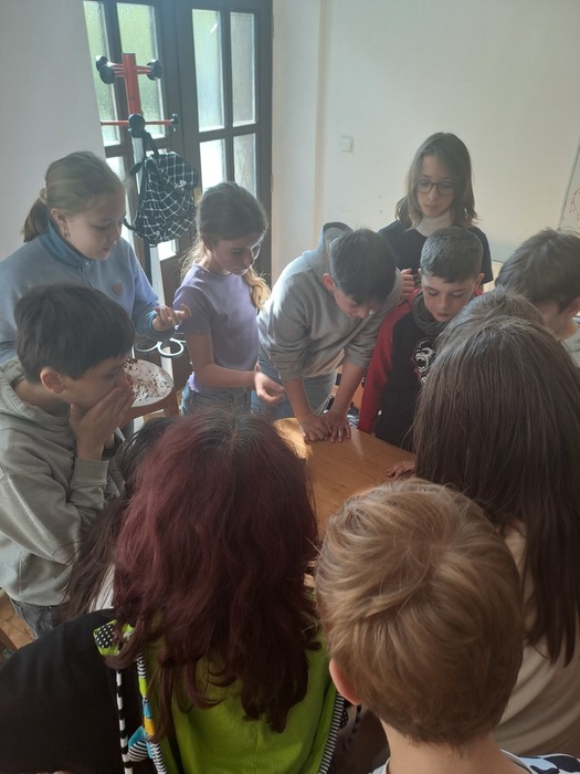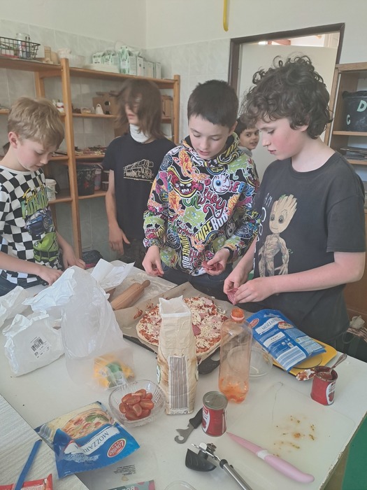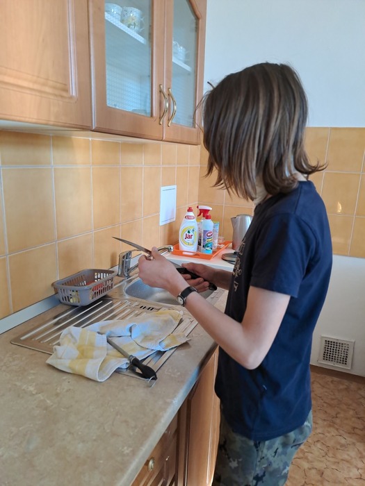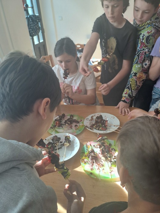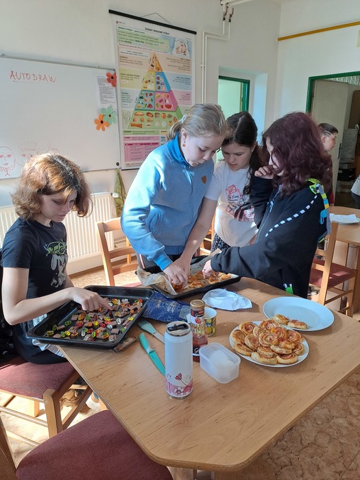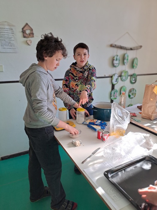 Kromě toho, že momentálně trénujeme pravopis přídavných jmen, sčítání a odčítání desetinných čísel, upevňujeme si své znalosti o České republice nebo se snažíme proniknout do fungování lidského těla, snažíme se rozvíjet i praktické dovednosti. Ve třídě se děti rozdělily do skupinek, domluvily se na pokrmu, který zvládnou společnými silami uvařit nebo upéct, zjistily si recept, všechny potřebné ingredience a ceny surovin, které budou potřebovat. Dále měly za úkol domluvit se, kdo které suroviny a další ingredience nakoupí nebo přinese, aby to bylo pro všechny přibližně stejně finančně náročné. Děti vše v kuchyňce v rámci svých skupinek zvládly na výbornou. Dokonce donesly ochutnat své menu i panu řediteli nebo paní zástupkyni. Posledním krokem byl úklid celé kuchyňky. To někoho ale vůbec nebavilo! No a před obědem nám zbyl ještě čas trochu se venku proběhnout.
