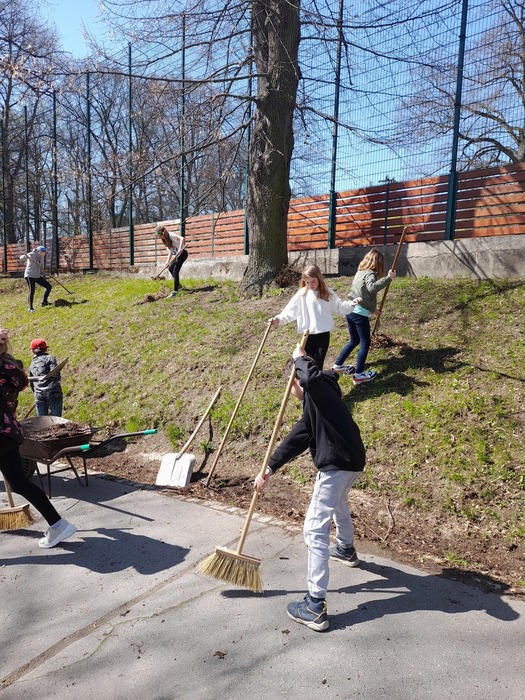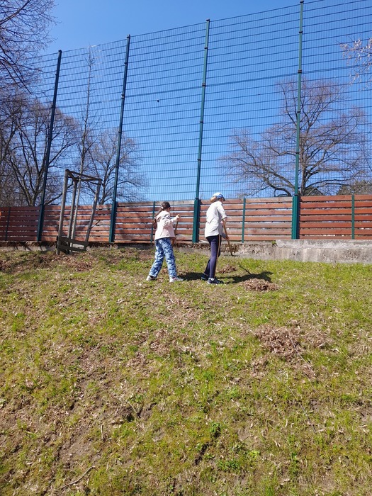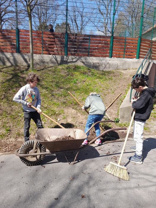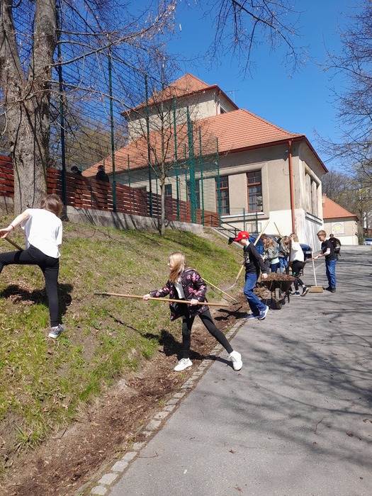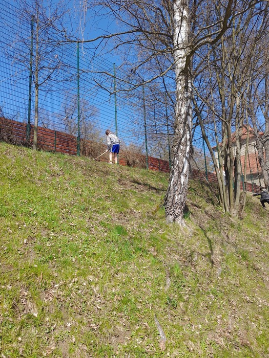 Dne 21. 4. jsme v rámci pracovních činností vzali do ruky koště, hrábě, lopatu nebo kotouč a snažili jsme se zvelebit alespoň malou část okolí školy. No, terén nic moc.