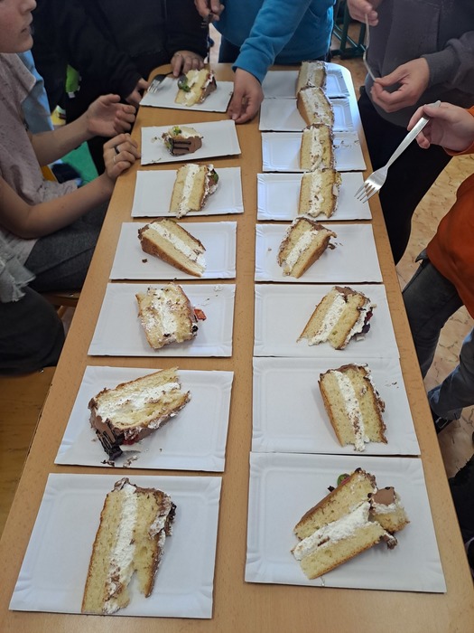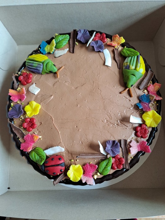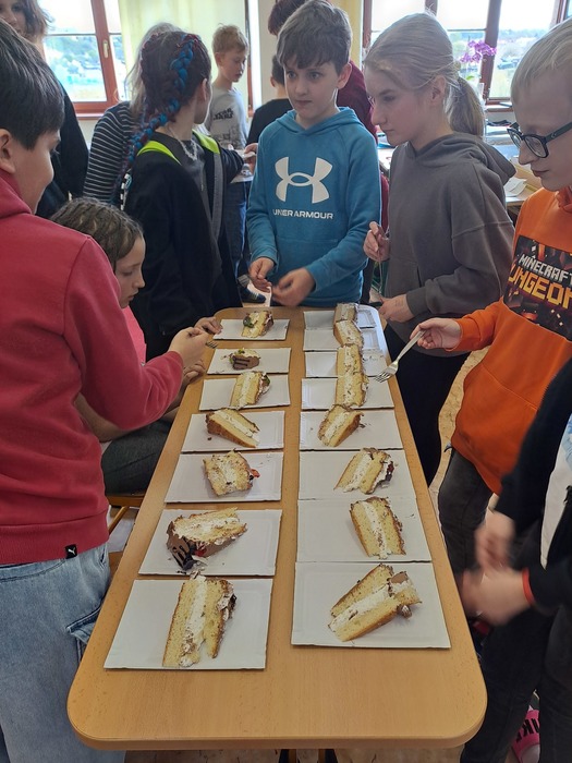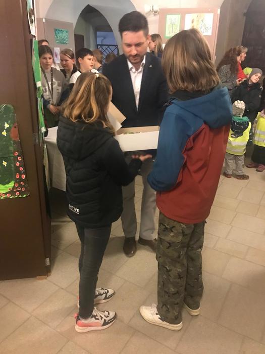 Kromě toho si Nina s Tobíkem byli za celou třídu vyzvednout tématický dort na jihlavském magistrátě. Získali jsme ho totiž jako zvláštní cenu ve výtvarné soutěži Brouci. Byl moc dobrý.