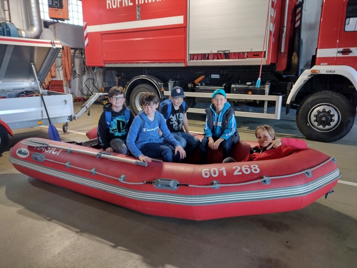 Cestou zpět do školy jsem ještě využila dne otevřených dveří u hasičů. Děti si mohly vyzkoušet veškerou techniku, splnit pár úkolů, do posledního kousku prozkoumat hasičská auta a dokonce se sklouznout po tyči :D Měli jsme "štěstí" a zažili jsme jak vypadá výjezd hasičů, viděli jsme jaká je to rychlost a prudce všem stoupl adrenalin.