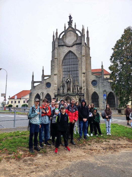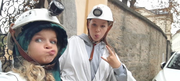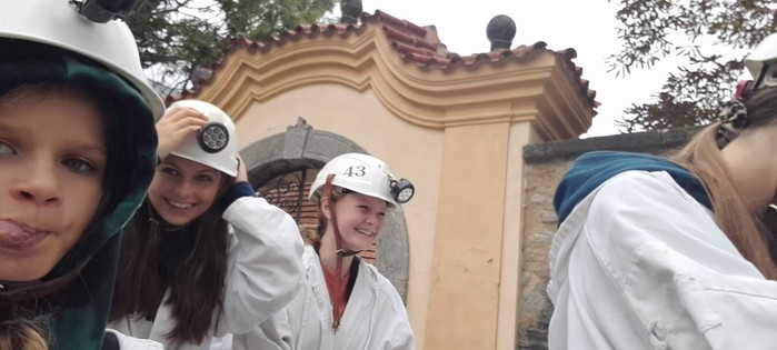 V Kutné Hoře jsme prvně měli prohlídku Kostnice v Sedlci, kde je výzdoba z opravdových kostí, poté jsme si prohlídli katedrálu Nanebevzetí Panny Marie. Tam někteří z nás zjistili, že v kostele není úplně fajn pojídat svačinu a sjíždět TikTok, takže jsme se odebrali do autobusu a nechali se popovézt k Českému muzeu stříbra v Kutné Hoře. A to vám byla paráda. Navlíkli nás do bílých hábitů, dali nám helmy s baterkami a pustili do 30metrové hloubky do podzemí. Některá místa byla vysoká jenom 120 cm a široká 40 cm. Dokonce jsme chvilku pobyli i v neskutečné, černočerné důlní tmě.