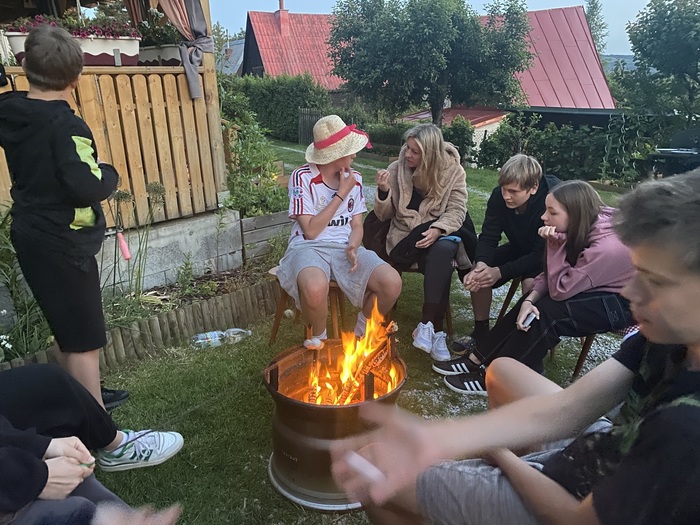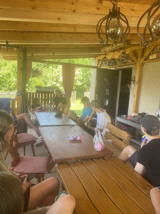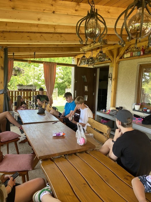 Zahráli jsme si fotbal, volejbal, vykoupali se v bazénu, stříkali po sobě pistolkami i hadicí, ugrilovali maso k večeři, ráno vyrobili palačinky s nutelou. V noci absolvovali stezku odvahy i zpěv s kytarou u ohýnku. Ostatně kytara a pěkná písnička nás provázela celou dobu.