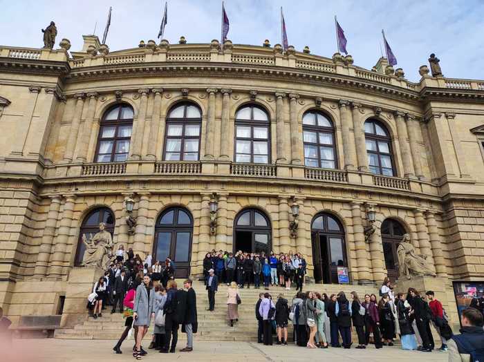 22. 3. 2024 - někteří žáci z naší třídy měli možnost jet se sedmáky na vzdělávací program České filharmonie do Rudolfina v Praze. Měli štěstí na koncert v Dvořákově síni "S Čajkovským nejen u Labutího jezera" spojený s výkladem dirigenta Marca Ivanoviče a moderátora Petra Kadlece. S hudbou Petra iljiče Čajkovského je seznámila Ćeská studentská filharmonie. Vyslechli si předehru-fantazii Romeo a Julie a po přestávce balet Labutí jezero. Viděli i primabalerínu Národního divadla Nikolu Márovou v roli bílé i černé labutě.