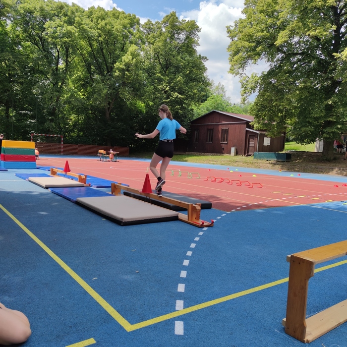 Pondělí 26.6.2023 - sportovně branný den - házeli jsme šipky, zopakovali si zdravovědu i základy protipožární ochrany, stříleli z pušky, běhali slalom, zdolali překážkovou dráhu, chodili po gumě natažené mezi stromy, ve dvojicích běhali s medicinbalem po schodech...