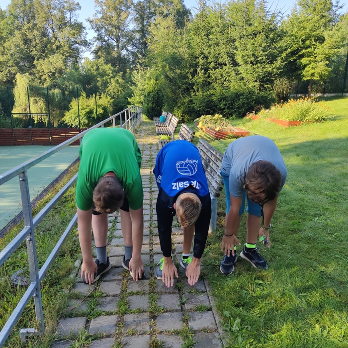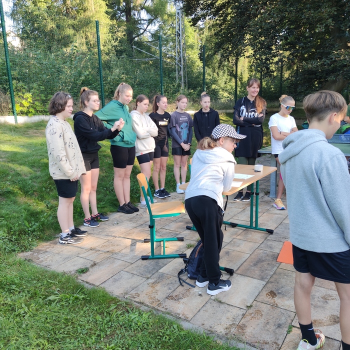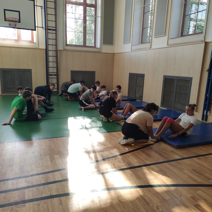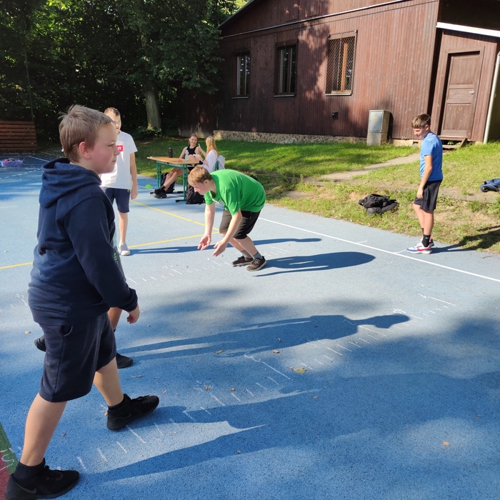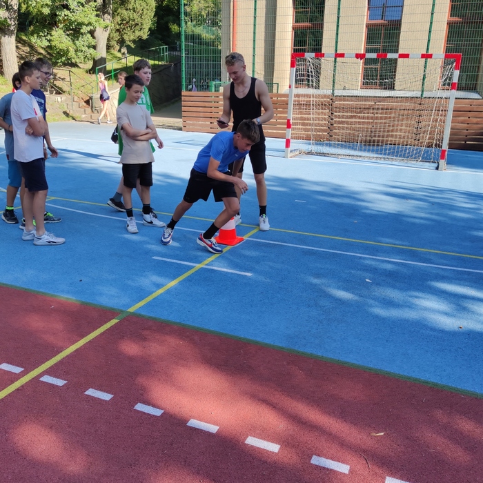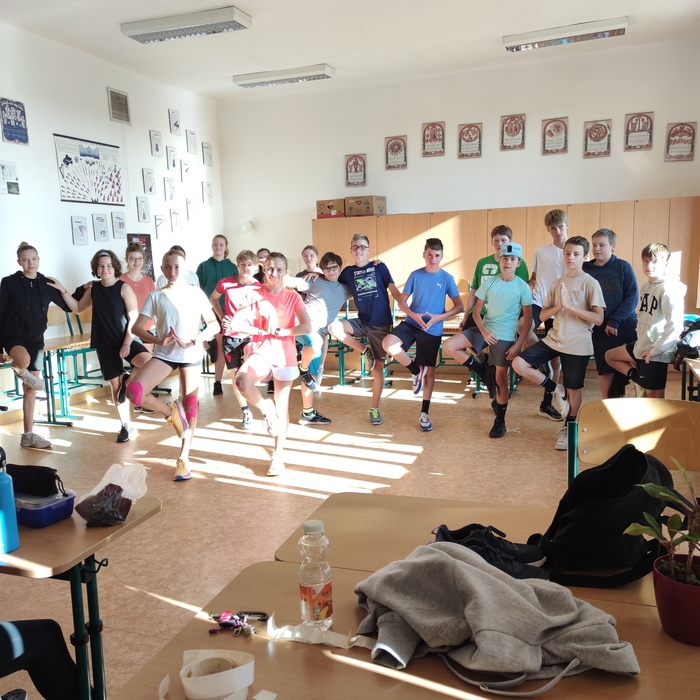 Plnili jsme disciplíny Sazka Olympijského víceboje, například postoj čápa, sedy - lehy, T-běh, skok z místa, běh na 1000 m, běh na 60 m, hod basketbalovým míčem, přeskoky přes švihadlo atd.