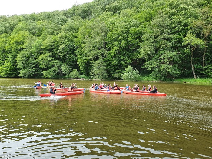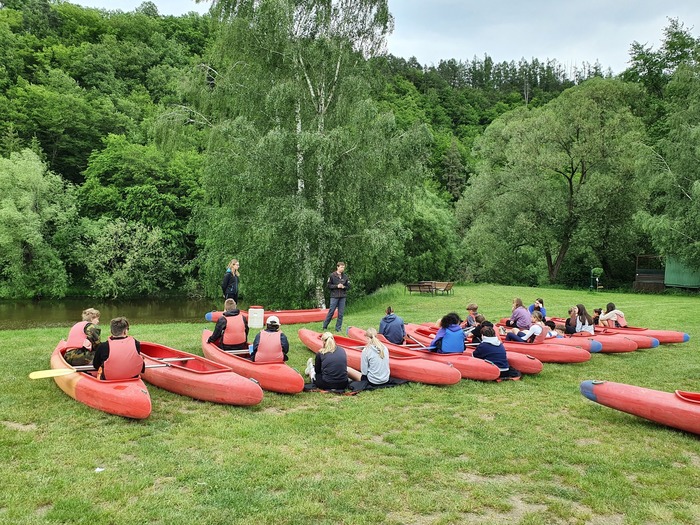 16. - 19.5.2024 - vlakem jsme dojeli až do vesničky Samopše a odtud došli do kempu, kde jsme po celou dobu bydleli. Hned první den odpoledne jsme si vzali vodácké vybavení - lodě, vesty, barely a pádla - a začal náš výcvik.Nejprve na suchu a pak na řece pod kempem. V pátek nás čekaly čtyři jezy, které jsme propluli šlajsnami. Někdo se namočil, nekdo ne, ale všichni jsme dorazili do cíle. V sobotu nám počasí moc nepřálo. Večer jsme měli táborák se špekáčky. A v neděli odpoledne do Jihlavy. Vodácký kurz jsme si užili a naučili se něco nového.