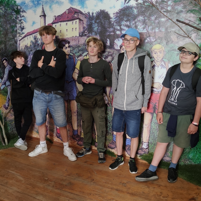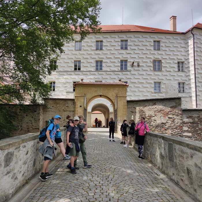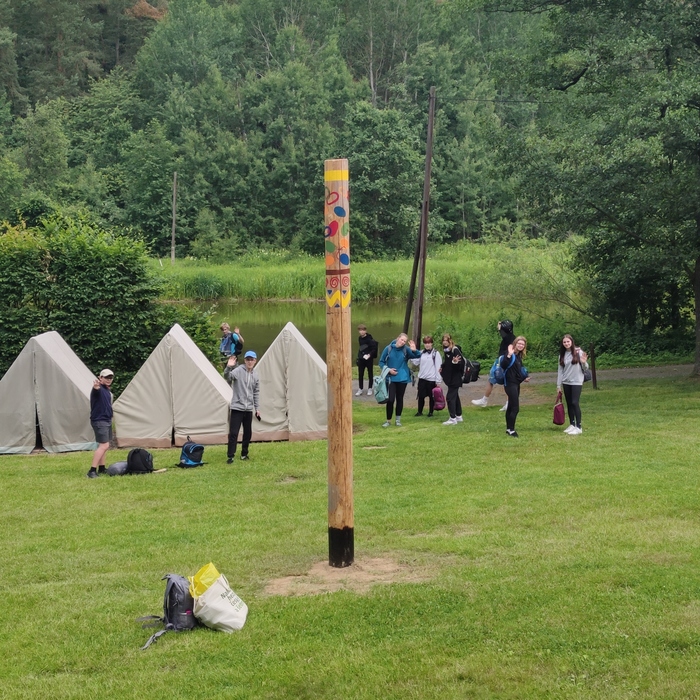 11. - 12. 6. 2024 - třídní výlet. Letos nás jelo opravdu dost málo. Ale přesto, nebo právě proto jsme si ho užili. Byli jsme ubytovaní na táborové základně ve Smrčné nad Sázavou. V Ledči nad Sázavou jsme navštívili hrad s expozicí starodávných, novějších i hracích hodin a viděli jsme výstavu sklářství. Prohlédli jsme si i Muzeum Jaroslava Foglara, velký hlavolam ježka v kleci, mnoho jeho knížek, jak se plnili bobříci... Večer jsme si opekli špekáčky, přečetli si jen malinko strašidelný horor a když jsme chtěli vyrazit na stezku odvahy, začalo pršet. Takže jsme zalezli do spacáků do stanů, chvilku si povídali a přitom usnuli. V noci nám bylo některým trochu zima. Druhý den jsme měli možnost vidět, jak se ošetřují kopyta koní. A v poledne hurá vlakem domů.
