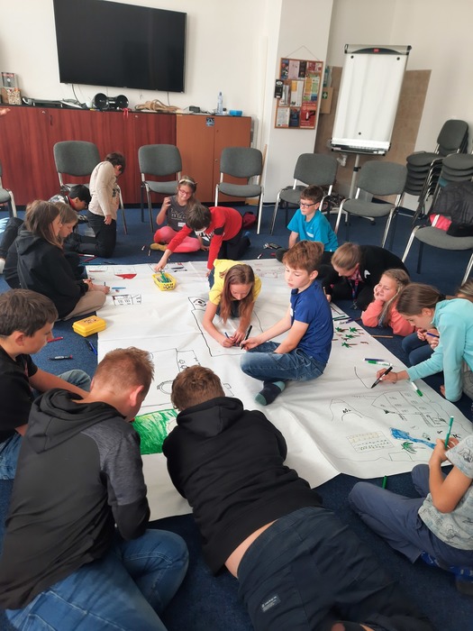 V pondělí 11. 10. jsme společně navštívili jihlavské centrum primární prevence Vrakbar. Tématem tohoto setkání byly stejně jako minule VZTAHY V KOLEKTIVU. Děti se pomyslně přenesly na opuštěný ostrov a pod vedením lektorů se společně snažily tento ostrov přeměnit na místo, kde by mohly trávit společný čas a zároveň si každý mohl najít místečko sám pro sebe. Veškeré aktivity byly zaměřeny na společnou komunikaci, spolupráci a v neposlední řadě důležitost respektu, tolerance a naslouchání ostatním.